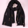 A heavier weighted camouflage design scarf with black, cream and light grey colours throughout.