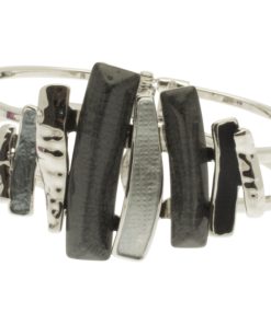A new design that brings together varying tones of grey and black interspersed with flashes of silver.  A real statement bracelet with a hinged design that makes it really easy to wear.