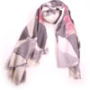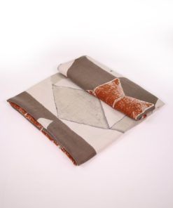 A khaki geometric patterned scarf, warm autumn browns interspersed with flashes of burnt orange.